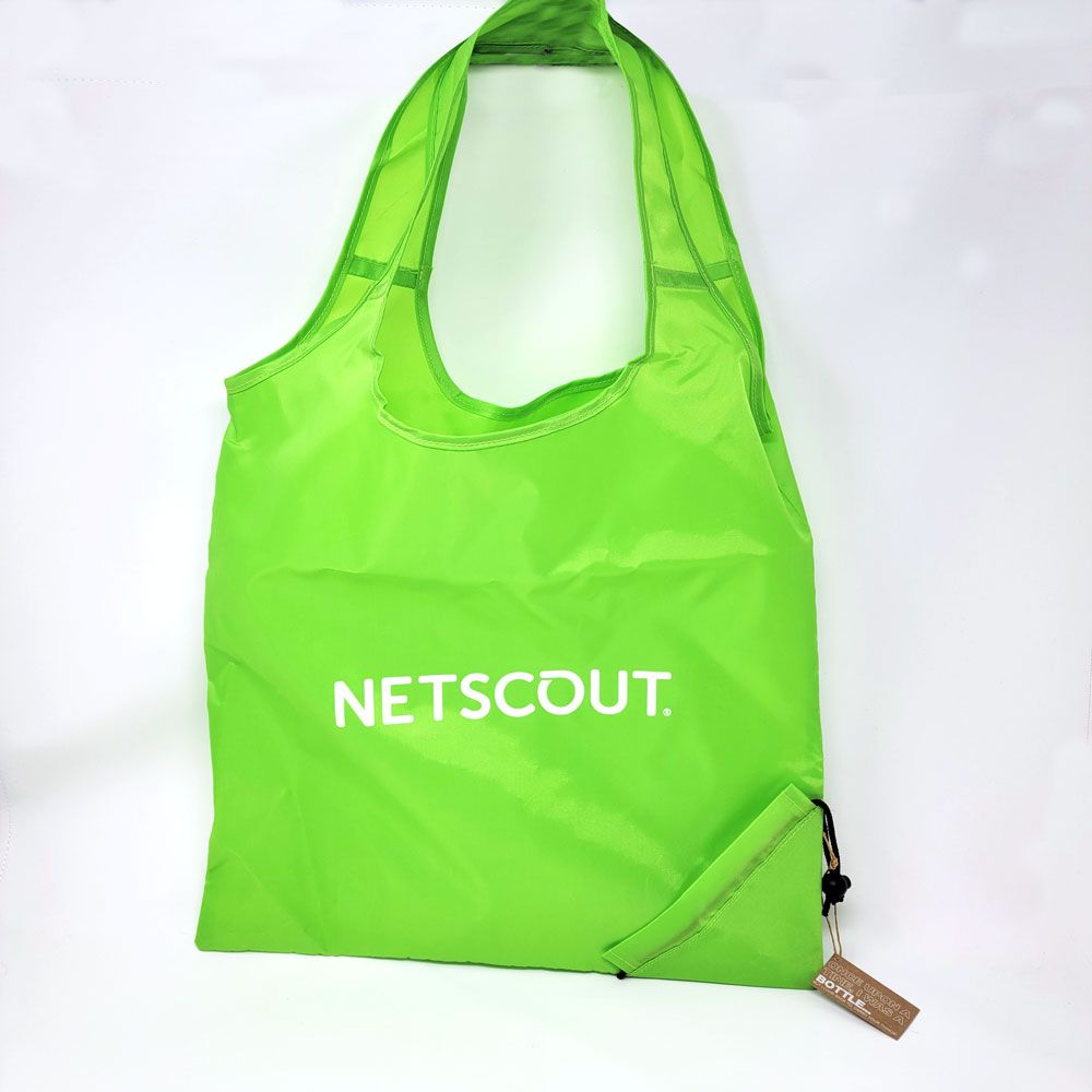 Reusable grocery bag made with recycled materials.
